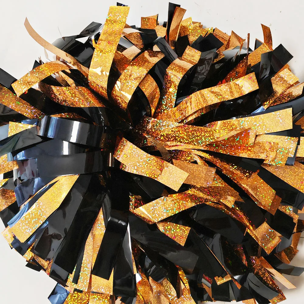 Get ready to cheer in style with our Metallic White, Light Blue, and Black Mix Cheerleader Pom Pom. This vibrant and eye-catching pom pom is designed to dazzle and enhance any performance. The metallic finish adds a touch of glamour, ensuring you stand out on the field or stage. The custom sizing and color options allow you to personalize your pom pom to match your team’s colors or your personal preference. Crafted with high-quality materials, this pom pom is durable and long-lasting, making it perfect for multiple performances and events. The baton handle provides a comfortable grip, allowing for easy and smooth movement during routines. Whether you’re cheering at a sports game, performing at a competition, or simply adding a fun accessory to your outfit, this cheerleader pom pom is a must-have for any enthusiast. Make a statement and elevate your cheering game with the Metallic White, Light Blue, and Black Mix Cheerleader Pom Pom. Bring energy and excitement to every routine with this sleek and stylish accessory. Stand out from the crowd and showcase your team spirit with a personalized pom pom that reflects your unique style. Add flair to your performances and let your spirit shine with this customizable and high-quality cheerleader pom pom.