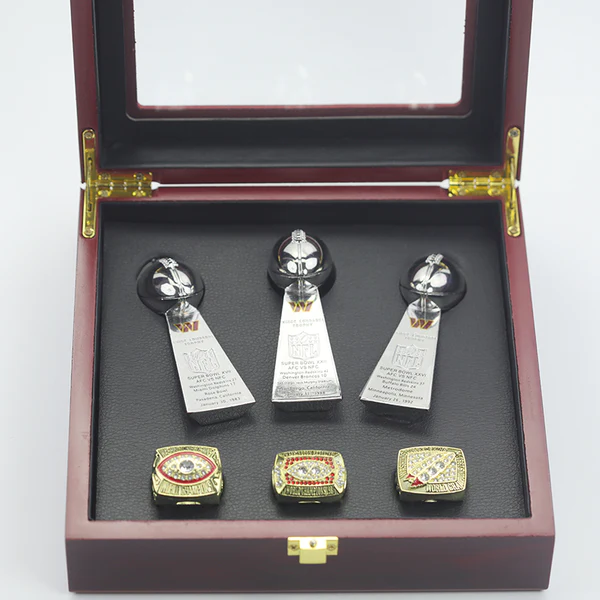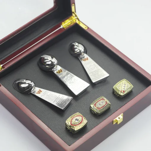 3 Washington Commanders (Redskins) championship ring set with 3 trophies