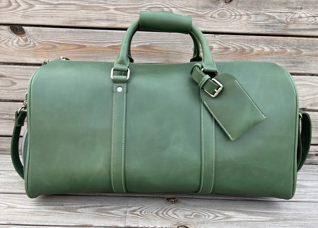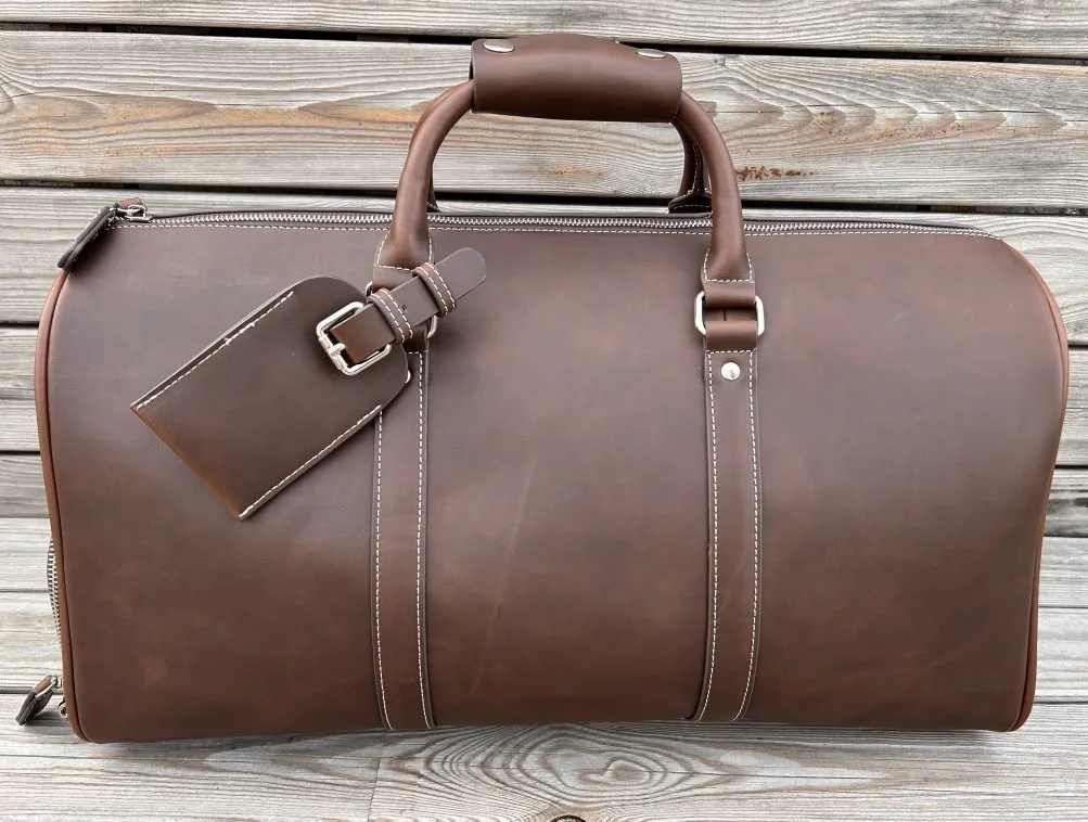 Discover the epitome of sophistication with the Custom Duffle Bag from Apex. Crafted from premium leather, this essential exudes luxury and durability in every stitch. Ideal for the modern traveler or fitness enthusiast, this duffle bag combines timeless style with practical functionality. With ample storage space, the Custom Duffle Bag ensures you can pack everything you need for a weekend getaway or a trip to the gym. The high-quality material not only guarantees long-lasting performance but also ages beautifully, developing a unique patina over time. The adjustable shoulder strap provides comfort during extended wear, while the sturdy handles offer versatility in carrying options. Stay organized on the go with multiple interior and exterior pockets designed to keep your essentials within easy reach. Whether you’re jetting off on a business trip or hitting the gym after work, the Custom Duffle Bag from Apex is the perfect companion for those who appreciate elegance and utility in one exquisite package. Elevate your travel or fitness routine with this leather masterpiece that balances style, functionality, and durability effortlessly.