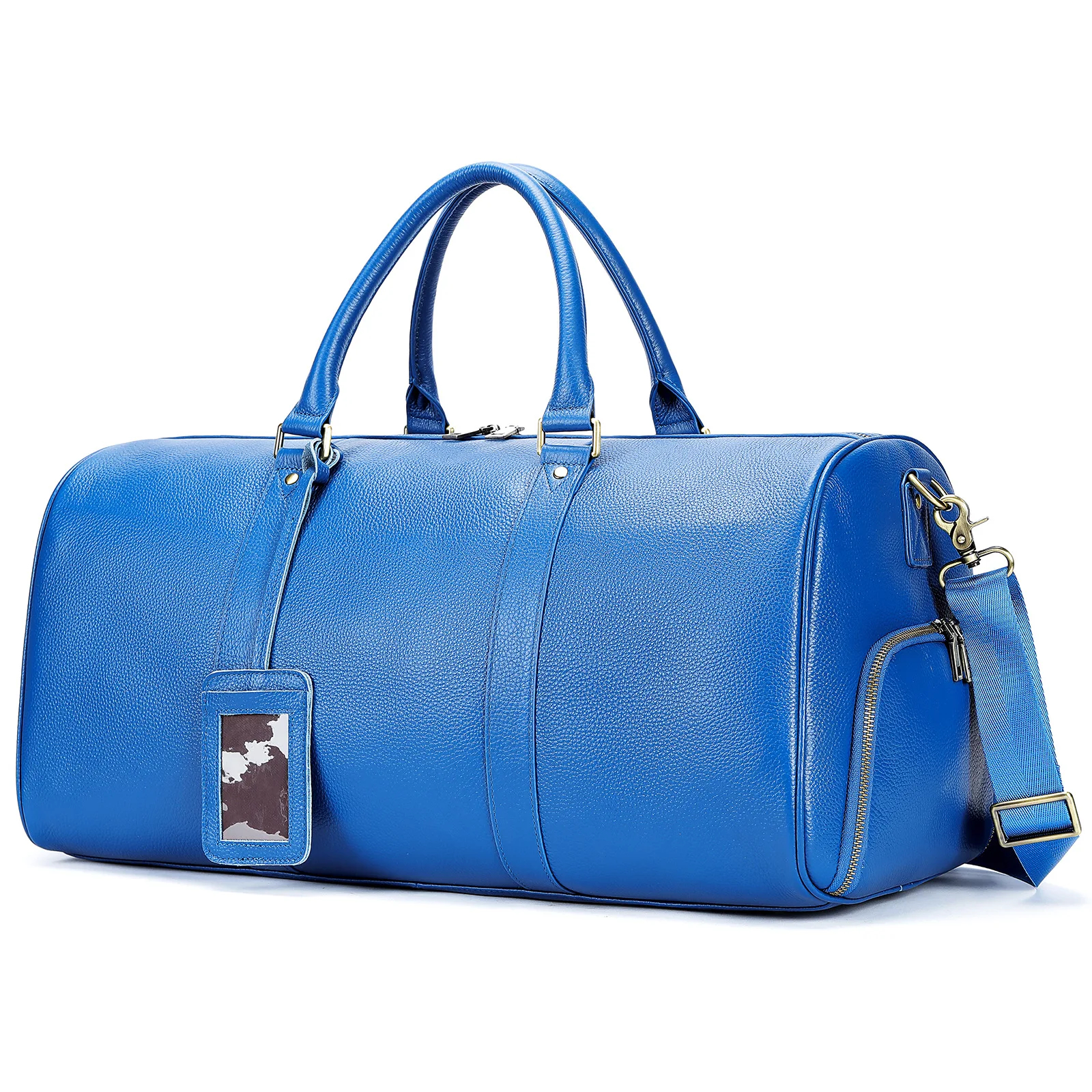 The Zenith Essential Custom Leather Duffle Bag is the epitome of sophistication and functionality. Crafted from high-quality leather, this duffle bag not only exudes luxury but also ensures durability to withstand the rigors of travel. Its timeless design and superior craftsmanship make it a versatile companion for both business trips and weekend getaways. This custom duffle bag features a spacious main compartment to accommodate all your essentials with ease. The interior zip pockets help keep your belongings organized, while the exterior side pockets provide quick access to items like your phone or passport. The adjustable shoulder strap and sturdy handles offer multiple carrying options for added convenience. Whether you’re jetting off for a business meeting or a leisurely adventure, the Zenith Essential Custom Leather Duffle Bag blends style and functionality seamlessly, making it a must-have accessory for the discerning traveler.