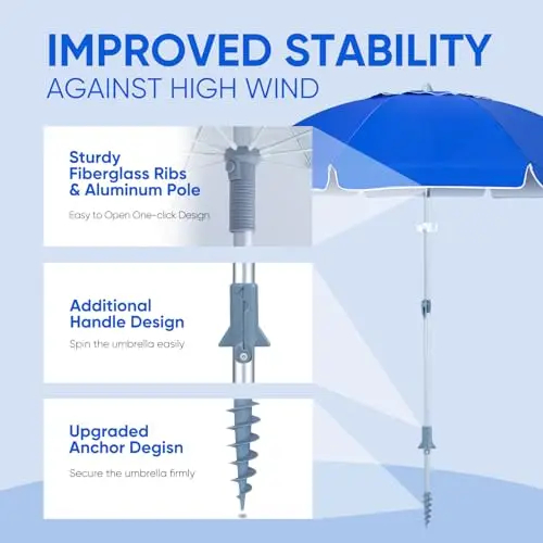 Crafted with a stainless steel pole and fiberglass ribs, it offers unmatched stability and resilience. The UV 50+ protection ensures you stay safe from harmful rays, while the polyester/oxford canopy provides lasting durability.