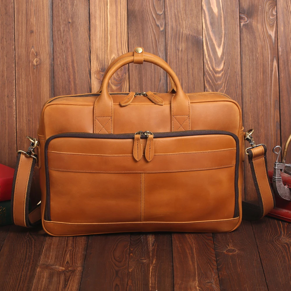 Experience timeless style and functionality with the Apex Bag, crafted from genuine full grain leather. This vintage-inspired computer laptop bag is designed to accommodate up to 15.6-inch laptops while exuding a sophisticated charm suitable for business and daily use. The light brown hue adds a touch of elegance to your ensemble, making it a versatile accessory for any occasion. Embrace the convenience of the single shoulder pack design, allowing easy access to your essentials on the go. The Apex Bag is fully customizable to cater to your specific needs and preferences, ensuring a personalized touch to your everyday carry. With premium quality leather construction, this bag promises durability, ensuring long-lasting use that ages beautifully over time, creating a unique patina that adds character to your bag. Whether you’re heading to the office, a business meeting, or simply commuting, the Apex Bag combines practicality and style seamlessly. Elevate your professional look and stay organized with multiple compartments for your laptop, documents, gadgets, and more. Invest in a reliable and stylish companion that not only protects your tech but also complements your refined taste in fashion. Choose the Apex Bag for a blend of vintage charm and modern functionality in one exquisite package.